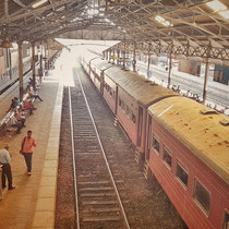 Mit den Zugtickets, die aus einem kleinen, viereckigen Stück Pappe mit Schriftzeichen und dem Wort BERUWALA bestanden, haben wir uns zu den anderen Wartenden an Zugsteig 5 gesellt. Natürlich waren wir viel zu früh da und mit uns unzählige weitere westliche Gesichter mit viel Gepäck und noch mehr Einheimische. Also beobachteten wir eine Stunde lang die anderen Bahnsteige, sahen übervolle Züge kommen und über-übervolle Züge gehen. Unzählige Menschen lehnten aus den offenen Fenstern, saßen zu dritt auf zwei Sitzen, standen in Gängen und in den offenen Zugtüren. Ein kurzer Halt, wer nicht in der Nähe der Tür stand um auszusteigen, wurde von der Menschenmenge der Einsteigenden einfach zurück in den Zug gedrängt. Manche stiegen sogar durch die offenen Fenster aus... uns wurde etwas mulmig.