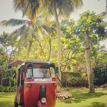 Gestärkt vom Curry haben wir uns dann auf den Weg zu Amuura gemacht. Da war sie wieder – die Frage, wie wir und unsere 2 Rücksäcke und noch die beiden Backpacks in nur ein Tuk Tuk passen sollten. An der Tuk Tuk-Schlange vorbei schleichend, haben wir mal ins erste kurz reingeschaut, dort war hinter den Sitzen eine fette Musikanlage verbaut - also war das nicht unser Gefährt. Der nächste Fahrer stopfte dann beide Taschen irgendwie hinter die Rückbank. Gehalten durch unsere Schultern ging die wilde Fahrt los. Wir fuhren durch ein muslimisches Viertel mit einem großen allabendlichen Fischmarkt, dort ist der Tourismus noch nicht so angekommen im Gegensatz zum 5 Kilometer südlich liegenden Bentota. Wir stoppten an der Tür zu Amuura und betraten unser Zuhause für die nächsten 6 Nächte.