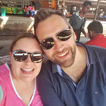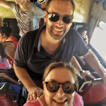 „Chicken, fish?“ Die Wahl fiel auf Chicken - und Tom deutete auf verschiedene Töpfchen, deren Inhalt gemeinsam mit einem riesigen Berg Reis und leckerem Papadam auf einem geflochtenen Teller landeten. Besteck? Blick links, Blick rechts – Fehlanzeige, man isst hier mit den Händen! Es war eine Premiere für uns (an den Göffel im Rucksack haben wir vor Aufregung irgendwie gar nicht gedacht...) Also griffen wir munter zu, natürlich mit der rechten Hand (die linke gilt als unrein) – die Einheimischen schauten verstohlen zu uns rüber und schienen sehr belustigt. Wir müssen wohl noch etwas an unserer Technik feilen. Man sortiert sich seine Portion aus allen Bestandteilen des Tellers zu einem Häufchen und manövriert dieses dann mit dem Daumen über die anderen vier Finger in den Mund. Ein Traum! Und, in unserem Fall, eine riesen leckere Schweinerei!