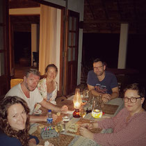 Und es ging weiter mit dem Verwöhnprogramm, jeden Tag wurde ein leckeres einheimisches Frühstück bereitet und das Abendessen mit Unterstützung der einheimischen Madu frisch gekocht. Es ergab sich eine tolle Stimmung im gesamten Haus, wenn alle gemeinsam an den großen Tischen saßen um zu plaudern, Reisepläne auszutauschen, herzlich zu klönen und um Karten zu spielen. Wir haben tolle Bekanntschaften geschlossen und jede Menge Spaß zusammen.